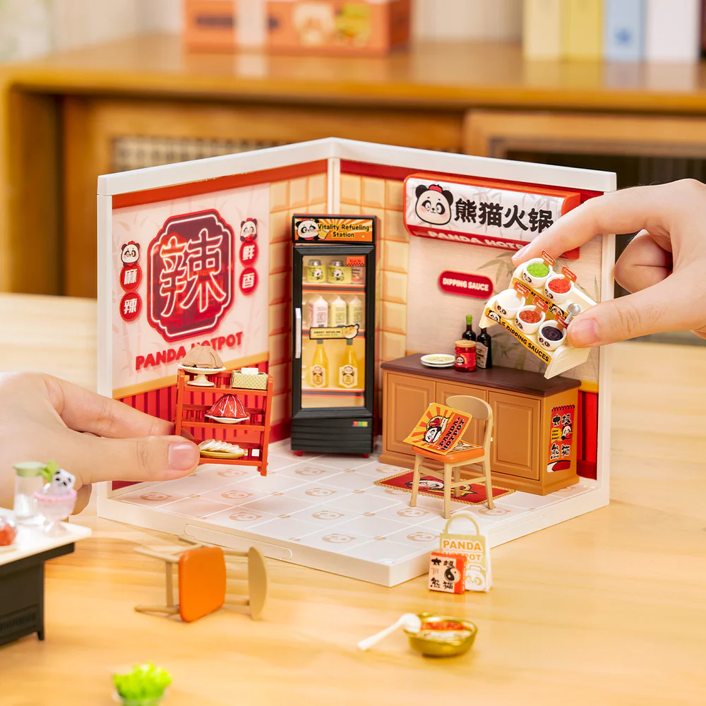 Chào mừng bạn đến với thế giới siêu dễ thương của Rolife Super Creator! “Tiệm Lẩu Panda HotPot” là một mô hình nhà mini cực kỳ thú vị, nơi bạn sẽ hóa thân thành chủ quán gấu trúc và tự tay xây dựng một tiệm lẩu nhỏ nhắn, rực rỡ sắc màu, tràn ngập không khí ấm áp và hương vị tưởng tượng.