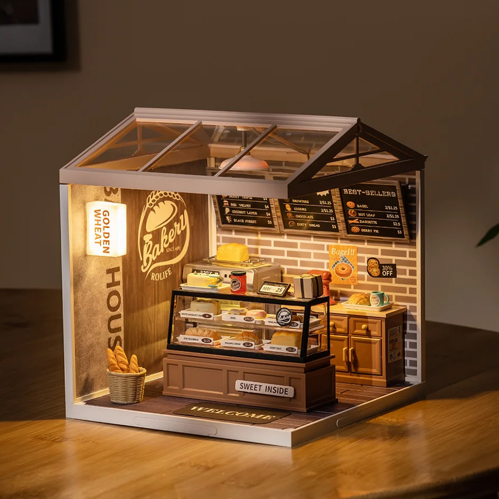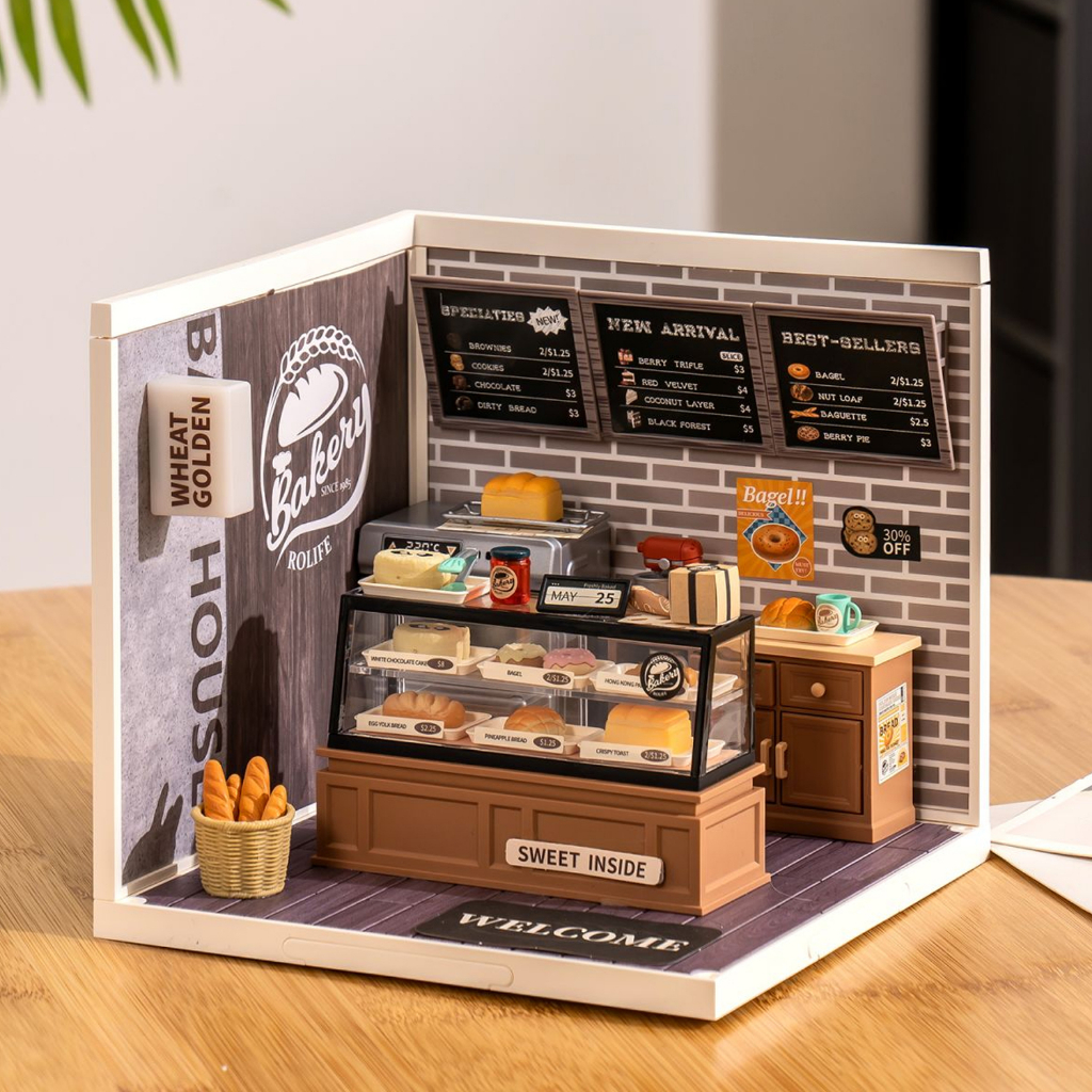 Mô hình Cửa hàng Bánh Tự Làm là một loạt seri sản phẩm thú vị dành cho những người yêu thích nghệ thuật sáng tạo và muốn tạo ra một ngôi nhà nhỏ trong hộp để thể hiện sở thích của họ. Đây là một loại “miniature house kit” có thể lắp ráp và tạo ra một căn phòng nhỏ trong đó bạn có thể bắt đầu một hình Cửa hàng bánh tự làm của hãng Robotime.